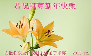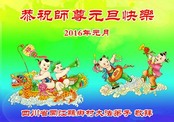 【明慧网二零一五年十二月二十九日】 黑龙江省佳木斯农村一家大法弟子恭祝师父新年好!