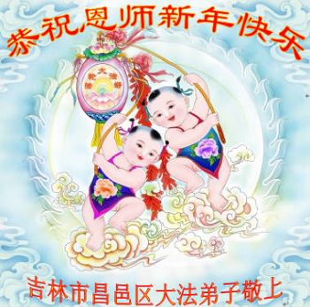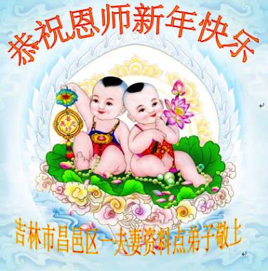 吉林市昌邑区一夫妻资料点大法弟子恭祝恩师新年快乐!