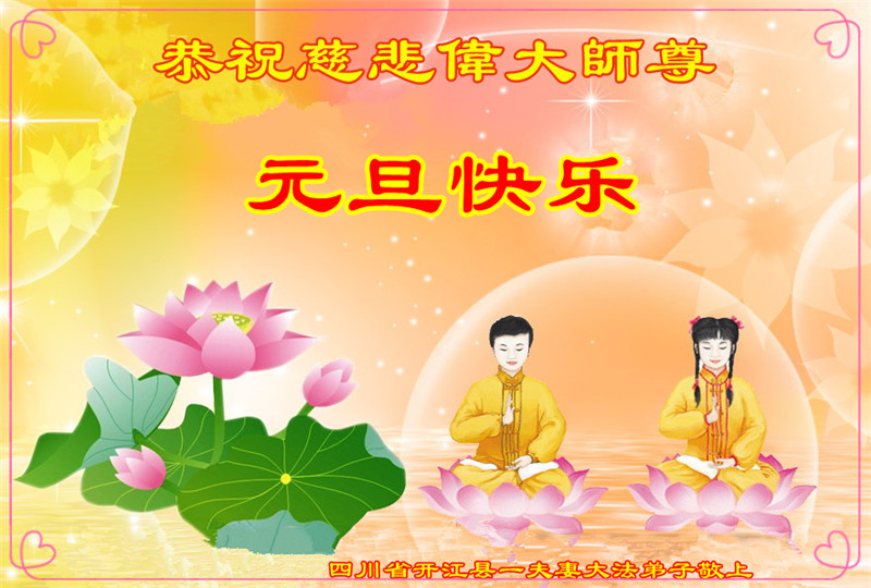 用尽人间的语言都表达不了对师尊慈悲救度的感谢! 四川省宜宾地区全体大法弟子恭祝慈悲伟大的师尊新年快乐!