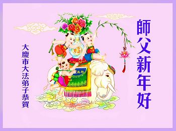 在元旦佳节来临之际,大庆阳光佳苑大法弟子及家人加上母亲同修恭祝师父节日快乐!