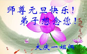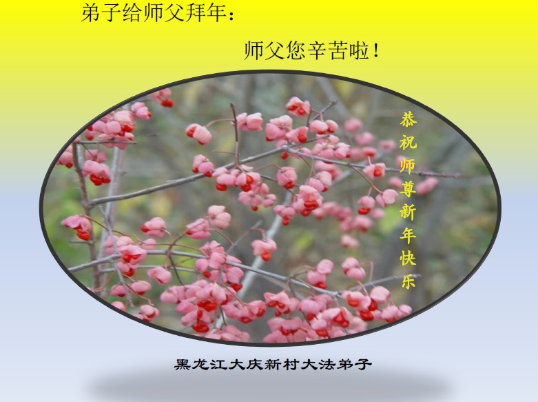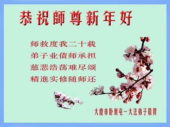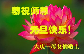 师尊救我二十载 弟子业债师承担 慈悲浩荡难尽颂 精進实修随师还 黑龙江省大庆市红岗区一大法弟子及其家人恭祝慈悲伟大的师尊元旦快乐!