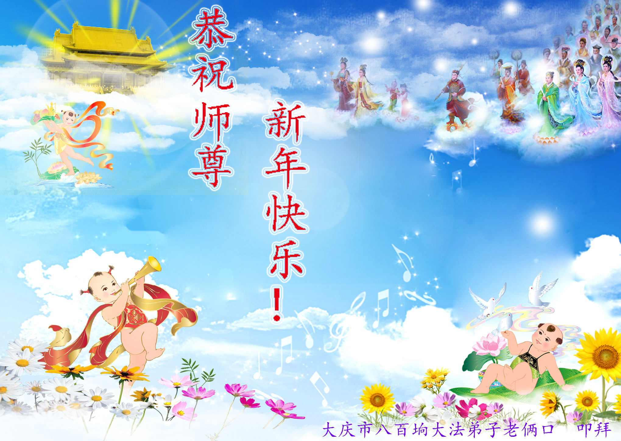 黑龙江省大庆大法弟子恭祝慈悲伟大的师尊新年快乐!