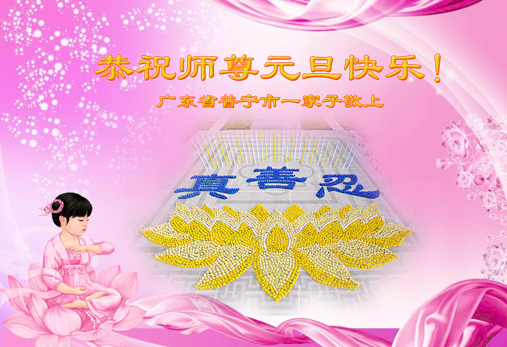 广东省汕头市全家大法弟子恭祝慈悲伟大的师尊新年快乐!