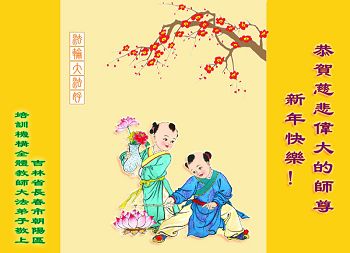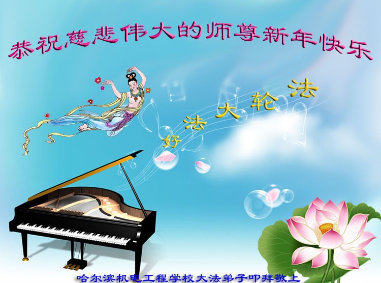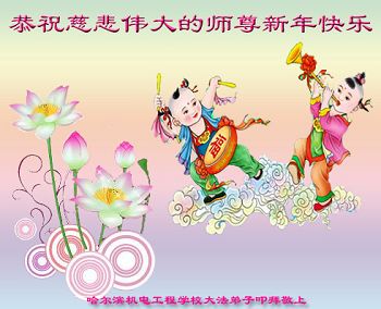 辞旧迎新爆竹鸣 弟子隔洋祝师尊 恭祝师尊新年好 感恩之心无言表 承担巨难延时间 关关呵护在身边 弟子跌倒师扶起 沮丧自卑师鼓励 万载有幸作法徒 承蒙师恩无以报 只有修炼赛如初 修心救人洪愿了 精進精進再精進 携众回天师尊笑 黑龙江省哈尔滨机电工程学校大法弟子恭祝慈悲伟大的师尊新年快乐!