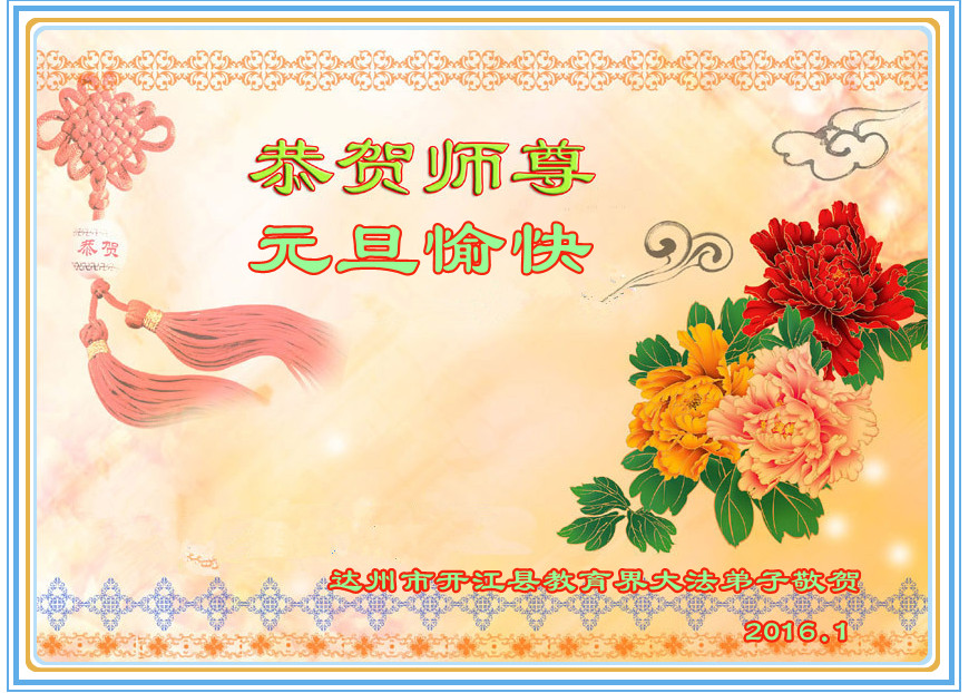 四川达州市开江县教育界大法弟子恭贺师尊元旦愉快!