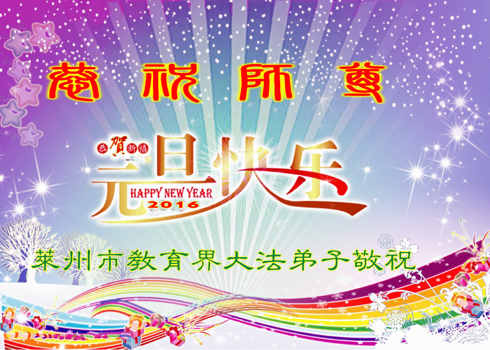 岁月匆匆,历史跨進了新的一年。师尊为了弟子的成功、世人的得救,还在承受。弟子一定珍惜师尊为众生的付出,牢记师尊教诲,修炼如初不松劲,抓紧时间多救人,让师尊放心! 山东省烟台市莱州市教育界大法弟子恭祝师尊元旦快乐!