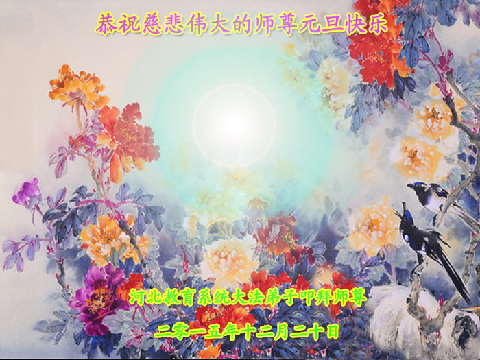 我们一定遵照师尊教诲,学好法,向内找,实修心性;协调配合,圆容好整体,共同跟上师父正法進程;修炼如初,共同精進,完成历史使命,兑现神圣誓约,圆满随师还。 河北教育系统大法弟子叩拜师尊!恭祝慈悲伟大的师尊元旦快乐!