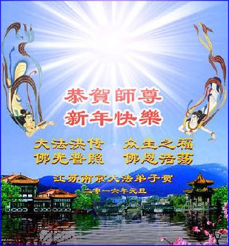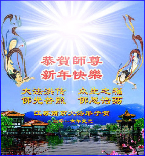 江苏南京大法弟子恭祝慈悲伟大的师尊新年快乐!