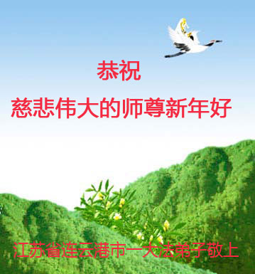 大法洪传,众生之福,法光普照,佛恩浩荡!师尊,您辛苦了!弟子一定不辜负您的期望,抓紧救人不松懈,助师正法更精進,修去最后的人心,用实际行动报答师恩! 江苏省连云港市一大法弟子恭祝慈悲伟大的师尊新年好!