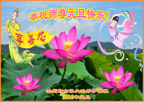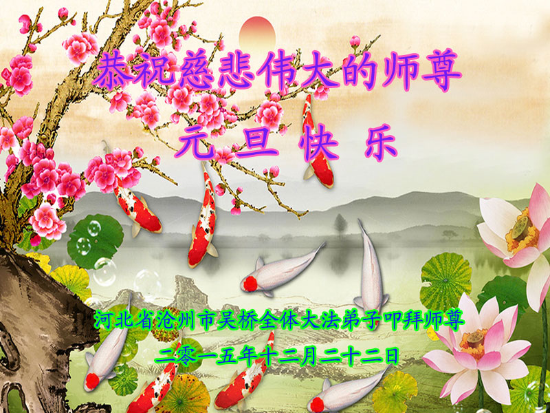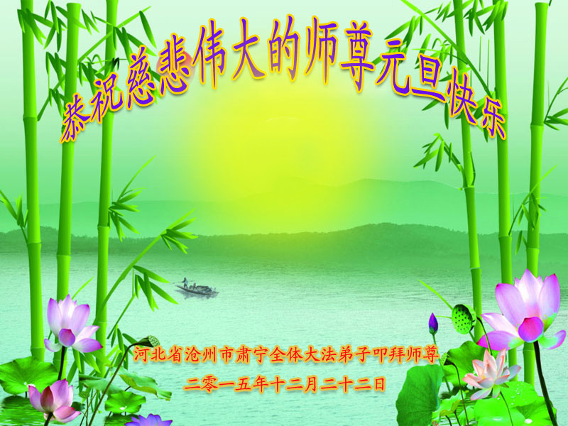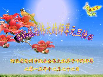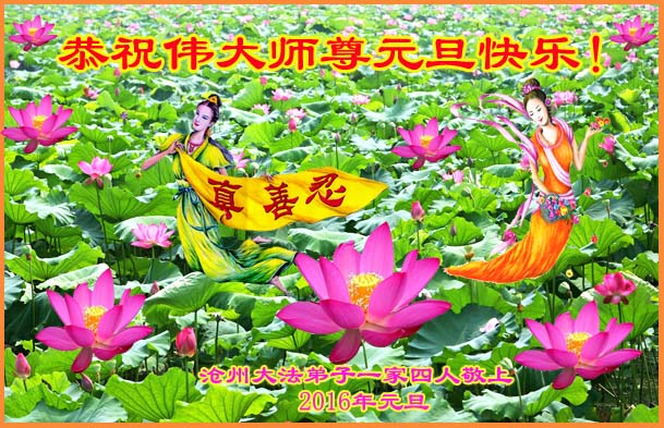【明慧网二零一五年十二月二十九日】 河北省沧州大法弟子一家四人恭祝师尊元旦快乐!