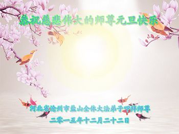 河北省沧州市盐山县全体大法弟子叩拜师尊,恭祝慈悲伟大的师尊元旦快乐!