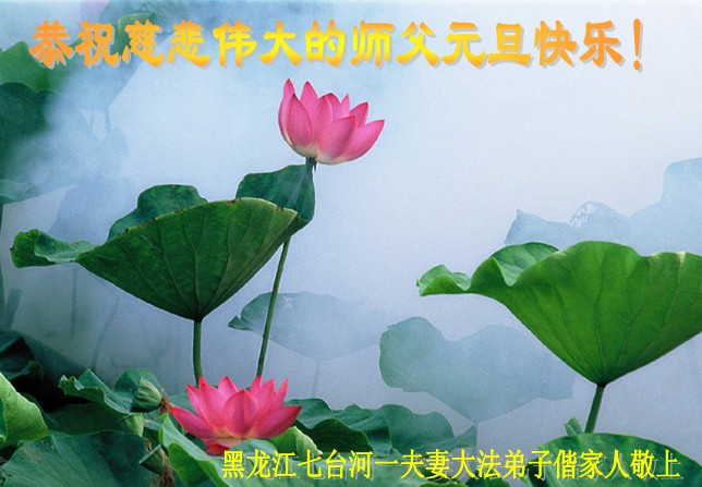 黑龙江七台河一夫妻大法弟子偕家人恭祝师尊元旦快乐!