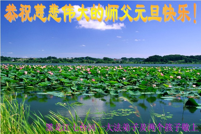 黑龙江七台河一大法弟子及两个孩子恭祝师尊元旦快乐!