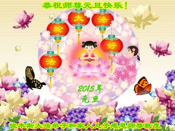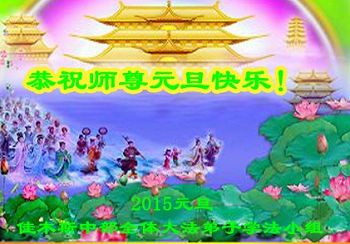恭祝伟大慈悲的师父新年好!新年快乐! 弟子们今后一定学好法,多学法,修好自己,多救人。决不辜负师父用巨大的付出,延续来的时间,圆满随师还! 佳木斯市一学法小组全体大法弟子 二零一五年十二月二十二日 黑龙江省佳木斯一学法小组大法弟子恭祝师尊元旦快乐!