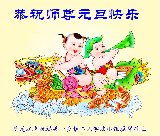 黑龙江省佳木斯一家庭学法小组大法弟子恭祝慈悲伟大的师尊新年快乐!