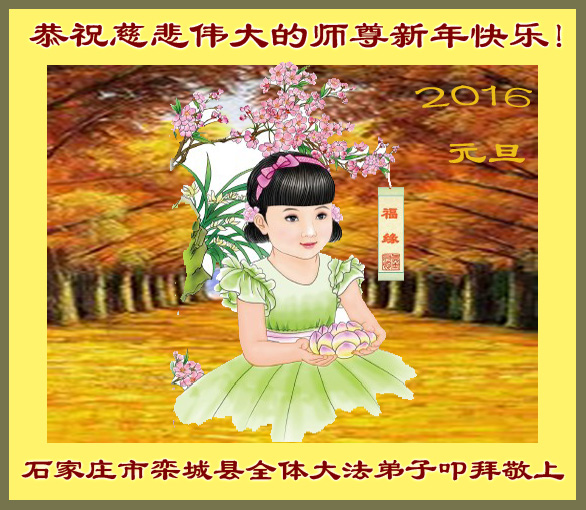 河北省石家庄市栾城县俩姐妹大法弟子叩拜敬上 二零一六年元月 河北石家庄两个学法小组的全体大法弟子恭祝师尊新年好!