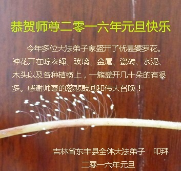千言万语难诉师徒恩,唯有勇猛精進,兑现誓约,让师尊多一点欣慰。 吉林省松原市一大法弟子 吉林省四平市伊通县全体大法弟子恭祝我们伟大的师尊二零一六年新年好!