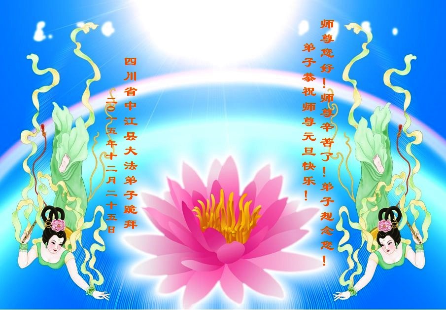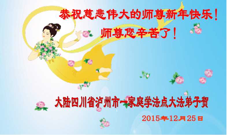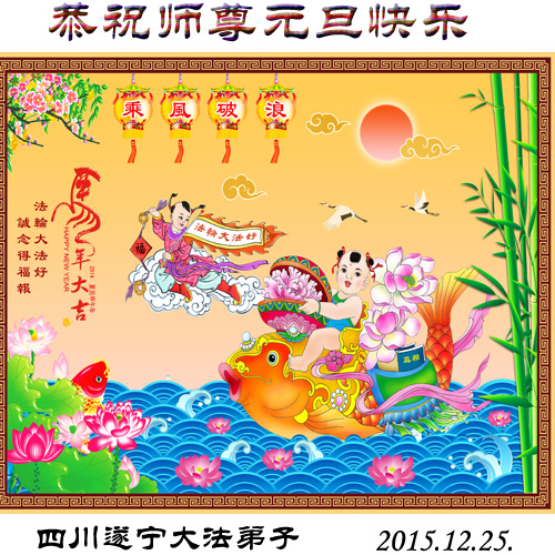 【明慧网二零一五年十二月三十一日】 四川遂宁夫妻大法弟子恭祝师尊元旦快乐!