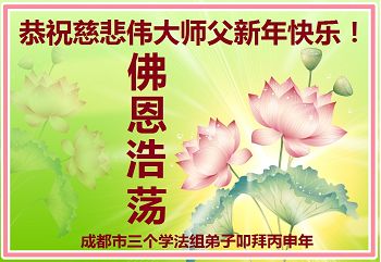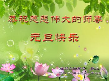 四川省成都大法弟子恭祝慈悲伟大的师尊元旦快乐!
