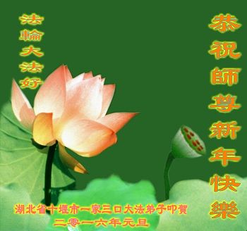湖北省十堰市一家三口大法弟子恭祝师尊新年快乐!