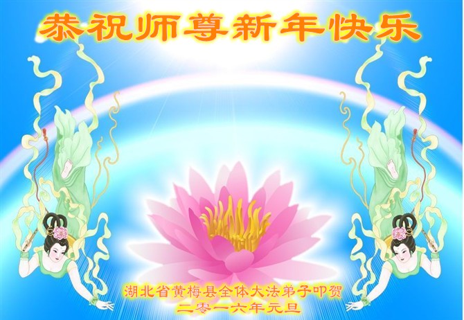 湖北省黄冈市全体大法弟子合十恭祝慈悲伟大的师尊新年好!我们十分想念您!