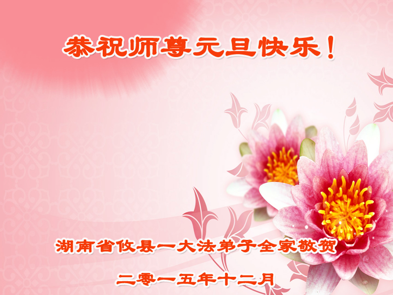 湖南省攸县全体大法弟子和一大法弟子全家恭祝师尊元旦快乐! 2015年12月27日 岳阳大法弟子新生恭祝师尊新年快乐!