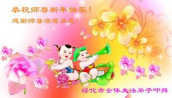 师尊新年快乐!叩拜师尊!合十 黑龙江省绥化市大法弟子祝贺师尊新年快乐!