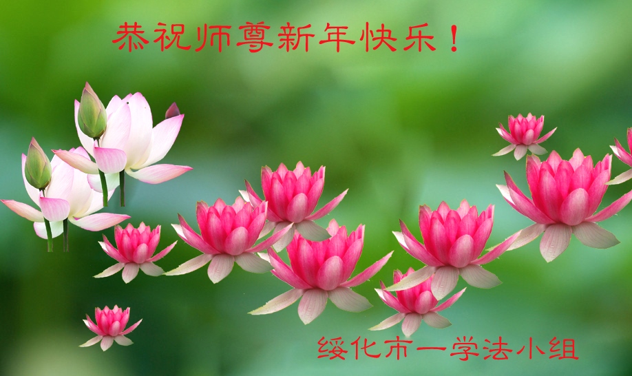 师父,新年好! 在新的一年里,弟子一定听师父的话做好三件事,学好法、清除邪恶、救度众生,真正展现法的庄严、神圣、美好! 黑龙江省疾控中心的大法弟子问候师尊!祝师尊新年快乐! 黑龙江省绥化市兰西县老俩口学法小组给师尊拜年!