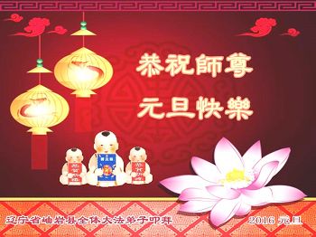 师父您辛苦了! 转眼十六年即将过去,新的一页即将展开,弟子一定听师父的话,做好三件事,修好自己一思一念。 一定做到修炼如初。弟子们叩拜师恩。 河北省秦皇岛市青龙农村一十五人学法小组 浙江省温州市瑞安市农村一学法小组大法弟子恭祝师尊新年快乐!