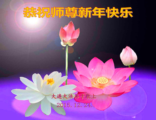 【明慧网二零一五年十二月三十一日】 辽宁省大连市一学法小组大法弟子遥祝慈悲伟大的师尊新年快乐!
