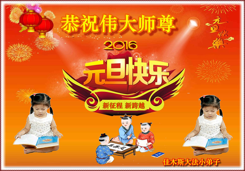 感师恩 时年如水元旦来, 年来一复谢师恩。 恭祝师尊元旦乐! 满怀慈悲兑誓约! 九岁大法小弟子献上一首诗感恩师尊救度!恭祝师尊元旦快乐! 小弟子叩拜师尊 黑龙江省佳木斯大法小弟子恭祝伟大师尊元旦快乐!