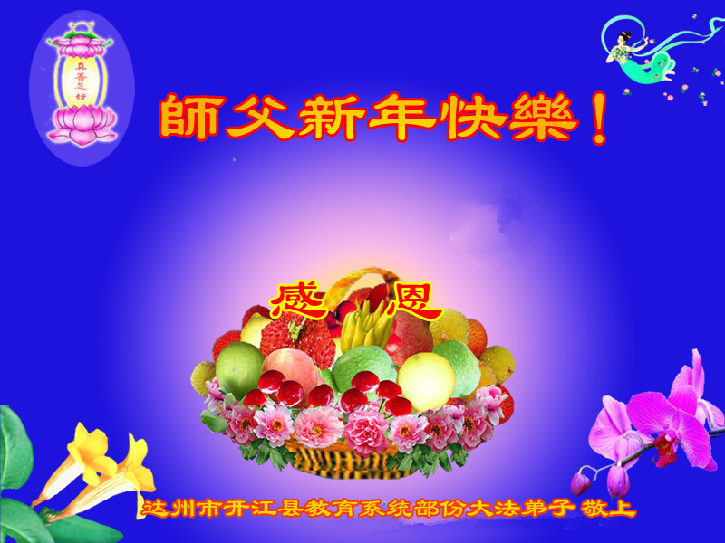 四川省达州市开江县教育界大法弟子敬祝师父元旦快乐!