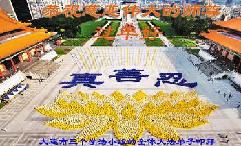 大法光辉耀全球 真善忍好心中留 助师正法不停步 永远跟随师父走 辽宁省大连大法弟子叩拜恭祝师父过年好!