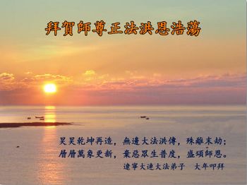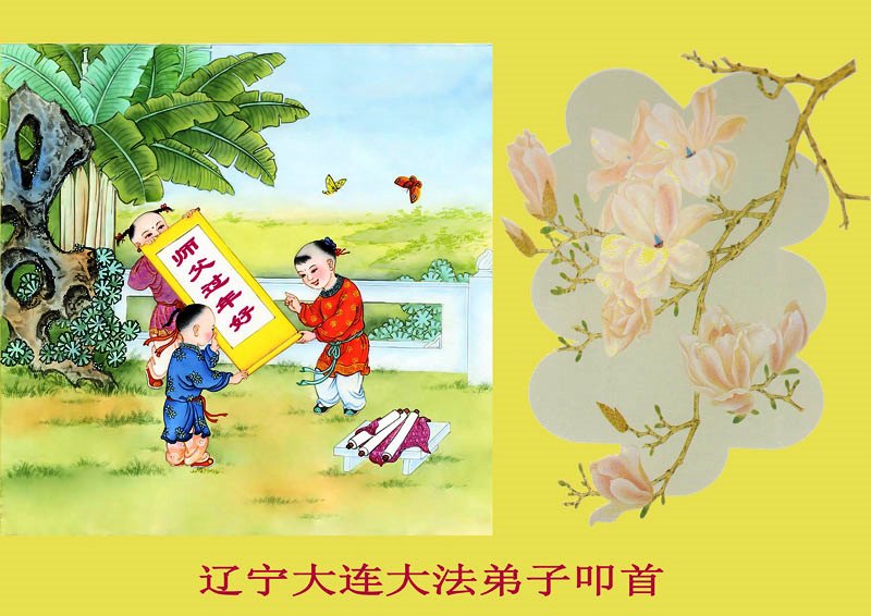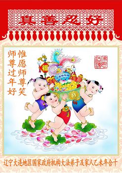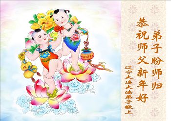 从得法到如今,千言万语万语千言无法表达师父对弟子救度的感恩,只能跪拜问候师父新春好!我们老年学法小组从2008年成立,从开始几天学一次法,到每天坚持集体学法至今。如今弟子们越来越走向成熟,学法、发正念、救众生越来越顺。谢谢师尊时时都在呵护我们,使我们在邪恶迫害中有惊无险稳健的走在大法的修炼路上。 叩拜师尊新春快乐! 辽宁省大连开发区大法弟子恭祝慈悲伟大的师尊过年好!