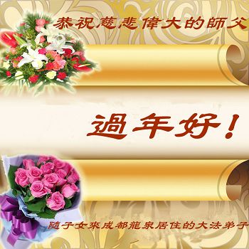 向慈悲伟大的师父问好!师父辛苦了!我们非常想念师父!我们只有按照师父的三件事做好,学好法、多学法,救度更多有缘人。再一次恭祝师父过年好! 随子女来四川省成都龙泉居住的大法弟子恭祝慈悲伟大的师父过年好!