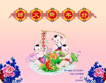 四川成都三位大法弟子及家人恭祝师父新年好!