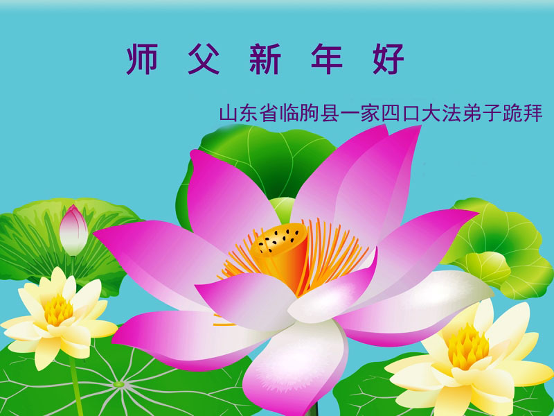 山东省潍坊市高密市大法弟子携全家恭祝师尊新年快乐!
