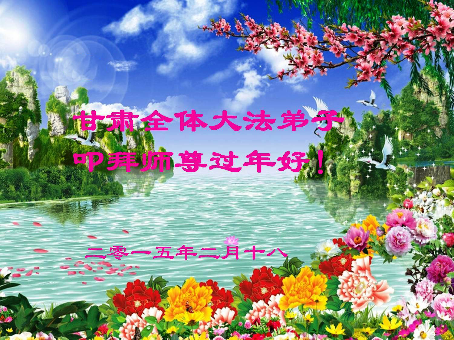 师尊,您辛苦了! 甘肃酒泉新城区大法弟子叩拜 二零一五年腊月二十三敬上 甘肃张掖地区高台县全体大法弟子给慈悲伟大的师父拜年!师父过年好?!