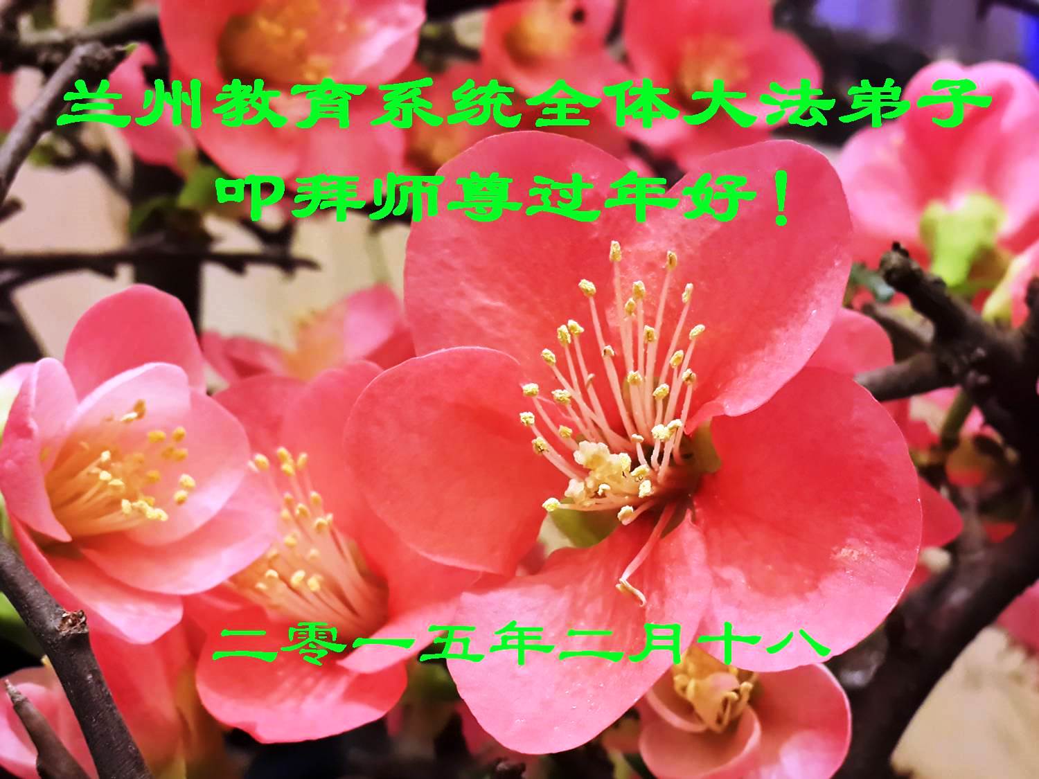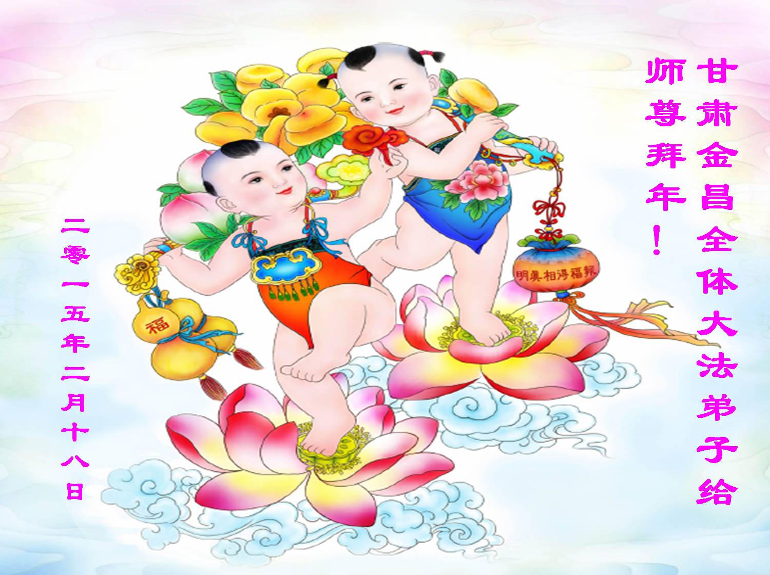 并祝明慧编辑部同修们,在新的一年里勇猛精進,万事如意! 甘肃兰州弟子 2015年2月10日 甘肃张掖市山丹县城乡全体大法弟子恭祝慈悲伟大的师尊新年好!