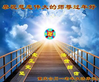 师父您辛苦了!我俩随师修炼十九年,历经血雨腥风艰难的日日夜夜,摔了不少跟头,常常伴着消业过关和魔难的痛苦,全是师父替弟子承受,是师父扶着我俩一步一步走过来的。感谢师父的慈悲苦度!是师父您给我们智慧,让我们两颗纯朴的心光亮起来,找到一条光明的回归路,因而无论遇到什么大灾巨难也无所畏惧,因为我们得到大法了。我们就是要按师父说的做,按师父安排的路走,按宇宙特性真善忍的标准要求修好自己,做好三件事,兑现在天誓约,完成历史赋予我们俩的特殊使命。感谢师尊! 重庆万州区全体大法弟子恭祝师父新年快乐!