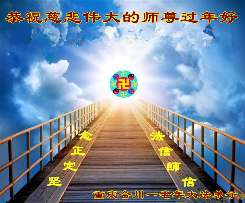 师尊啊!师尊啊!是您把我们从地狱中捞起来,用手托着我们走到了今天。在艰险的回家路上,邪恶疯狂的迫害,是您在我们的身边呵护着,拉着我们的手一关一关的走过来。您为了整个苍穹,您为了众生都能得救,您为了所有大法弟子都能圆满,是您承受着延续着时间。弟子用尽人间的语言,用尽人间的一切也无法报答师尊的大恩。弟子只有精進再精進,找回修炼如初的状态。助师正法,救度更多的众生,兑现史前的誓约,圆满随师还。 重庆合川一老年大法弟子恭祝慈悲伟大的师尊过年好!