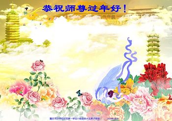 师父辛苦了!您为救度众生操尽了心!可过去我们还有很多事情做的不尽人意,让师父为我们承受更多的魔难,愧对师父的苦度。但请师父放心,万州大法弟子不气馁,我们心里只有师父,头脑中只有大法,一定按照您安排的路走,按您所要的去做,更好的做好三件事,救度更多的众生,随师坚修到底,圆满回家。 重庆市沙坪坝区双碑一学法小组全体大法弟子恭祝师尊过年好!