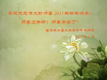 在师尊无微不至的慈悲呵护下,我们走过漫漫岁月,即将迎来二零一五新年的曙光。弟子们堂堂正正的走到今天,每一步提高、每一步升华都凝聚着师尊无限的艰辛与无量的慈悲。我们的感激无以言表,在最后的日子里,唯有实修、做好三件事,坚信师父、坚信大法,完成师父给我们安排的修炼道路,圆满随师还。 重庆流离失所大法弟子恭祝师尊新年快乐!