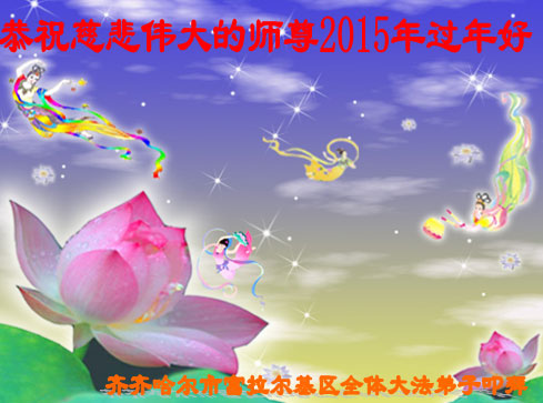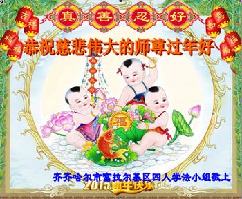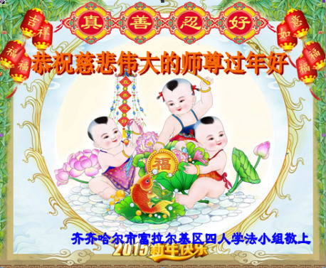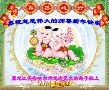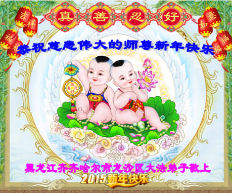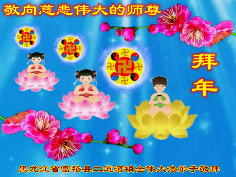【明慧网二零一五年二月十四日】 黑龙江省齐齐哈尔市富裕县二道湾镇全体大法弟子向慈悲伟大的师尊拜年!