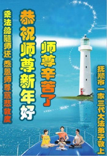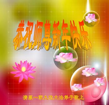 师尊我们想念您!盼师尊早日回国!在新的一年里,我们一定不辜负师尊的慈悲苦度,做好三件事,学好法,修好自己。请师尊放心! 辽宁省丹东大法弟子恭祝师父新年快乐!