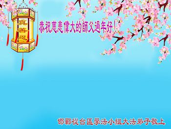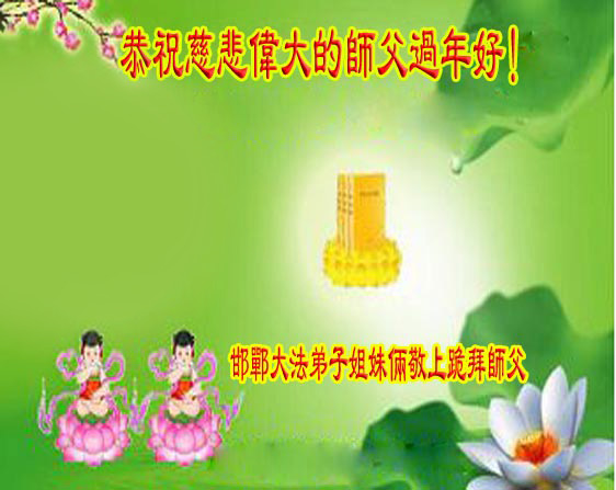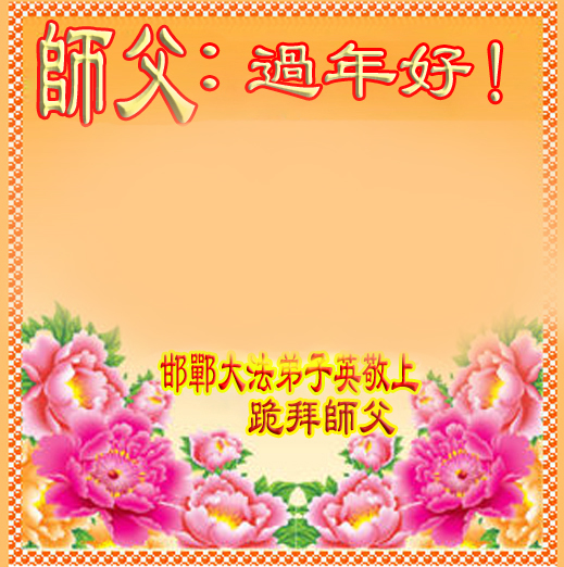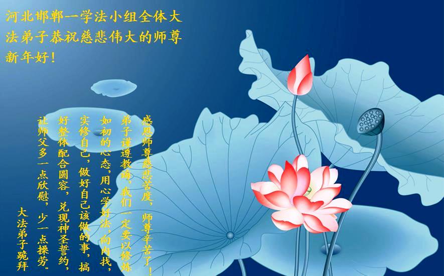 师父过年好!弟子一定听师父的话,正念正行,做好三件事,用大法归正自己的一言一行,做一个合格的大法弟子,圆满随师父回家。 河北省邯郸一学法小组全体大法弟子恭祝师父新年好!