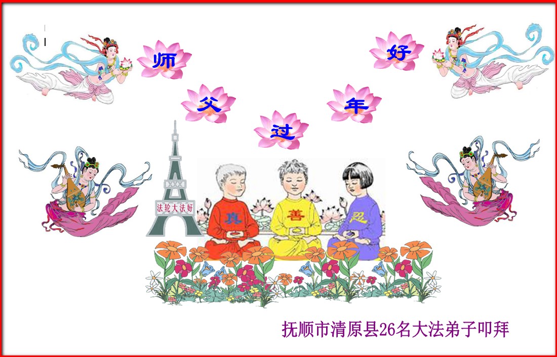 师尊我们想念您!盼师尊早日回国! 在新的一年里我们一定不辜负师尊的慈悲苦度,做好三件事,学好法,修好自己。 请师尊放心! 辽宁抚顺市新宾县大法弟子恭祝师尊新年快乐!