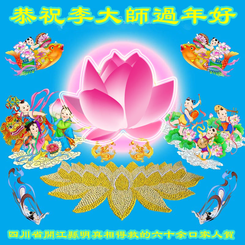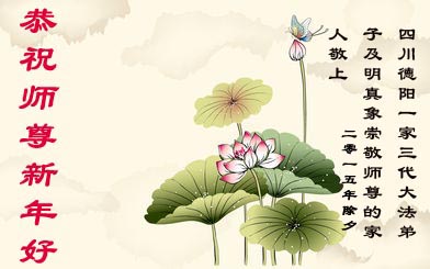 四川德阳一家三代大法弟子及明真相的世人恭祝师尊新年快乐! 四川省达州市开江县一大法弟子的一双儿女敬祝李大师过年好!