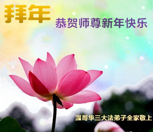 加拿大温哥华三大法弟子及全家向师尊拜年!恭祝师尊新年快乐!