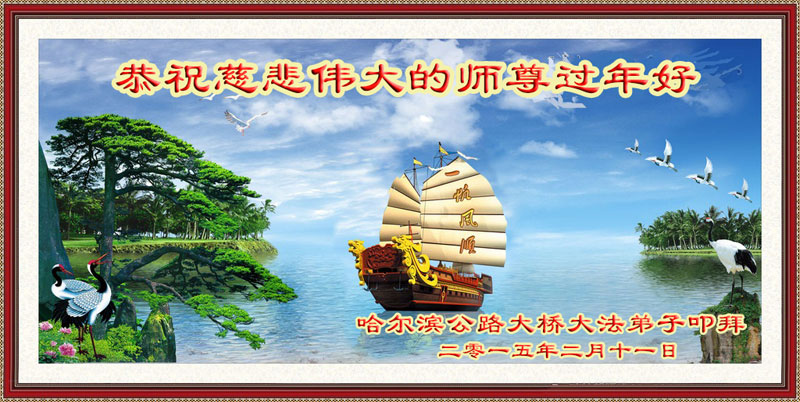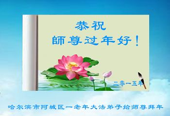 【明慧网二零一五年二月十七日】 黑龙江省哈尔滨一老年大法弟子恭祝师尊新年快乐!